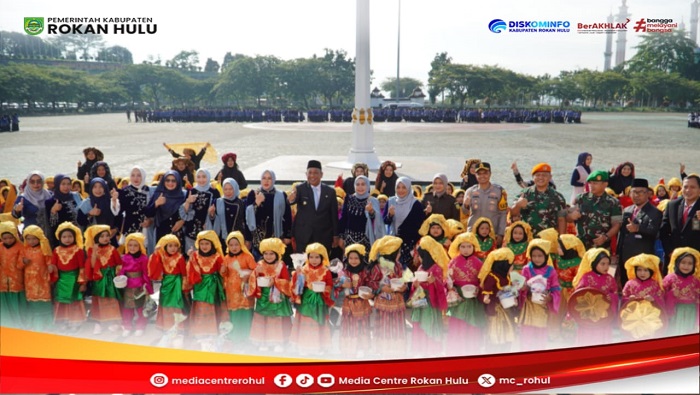 Upacara khidmat ini turut dihadiri oleh Sekretaris Daerah Rohul Muhammad Zaki, S.STP, M.Si, Ketua GOW Rohul Hj. Masni Bahtiar, Ketua DWP Rohul Ny. Siska Irda Ningsih, serta jajaran unsur Forkopimda dan para Camat se-Kabupaten Rokan Hulu.