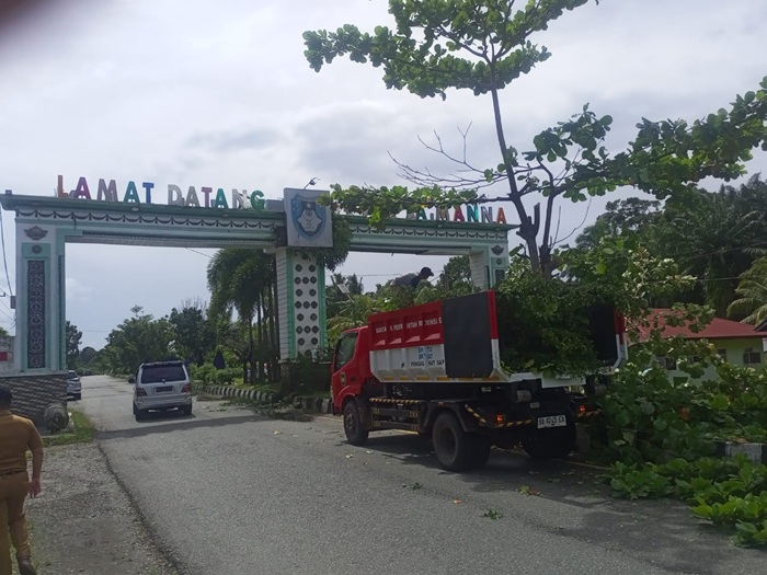 “Hari ini kita pemangkasan perapian di jalan dua jalur, khususnya di selamat datang di Kota Manna (gapura),” kata Erwin Muchsin.