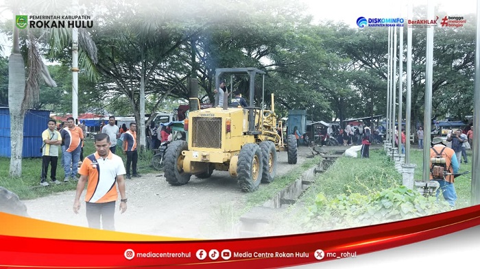 Usai apel, seluruh aparatur PU dan Perkim yang dipimpin Plt. Kadis PUPR, H. Zulfikri, terlibat dalam gotong royong massal di beberapa titik prioritas Pasir Pengaraian. Alat berat pun diterjunkan untuk memastikan hasil maksimal.