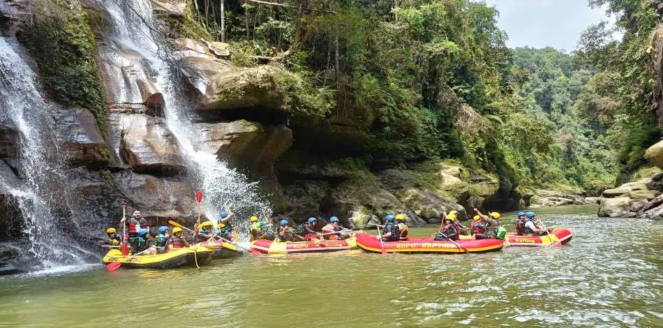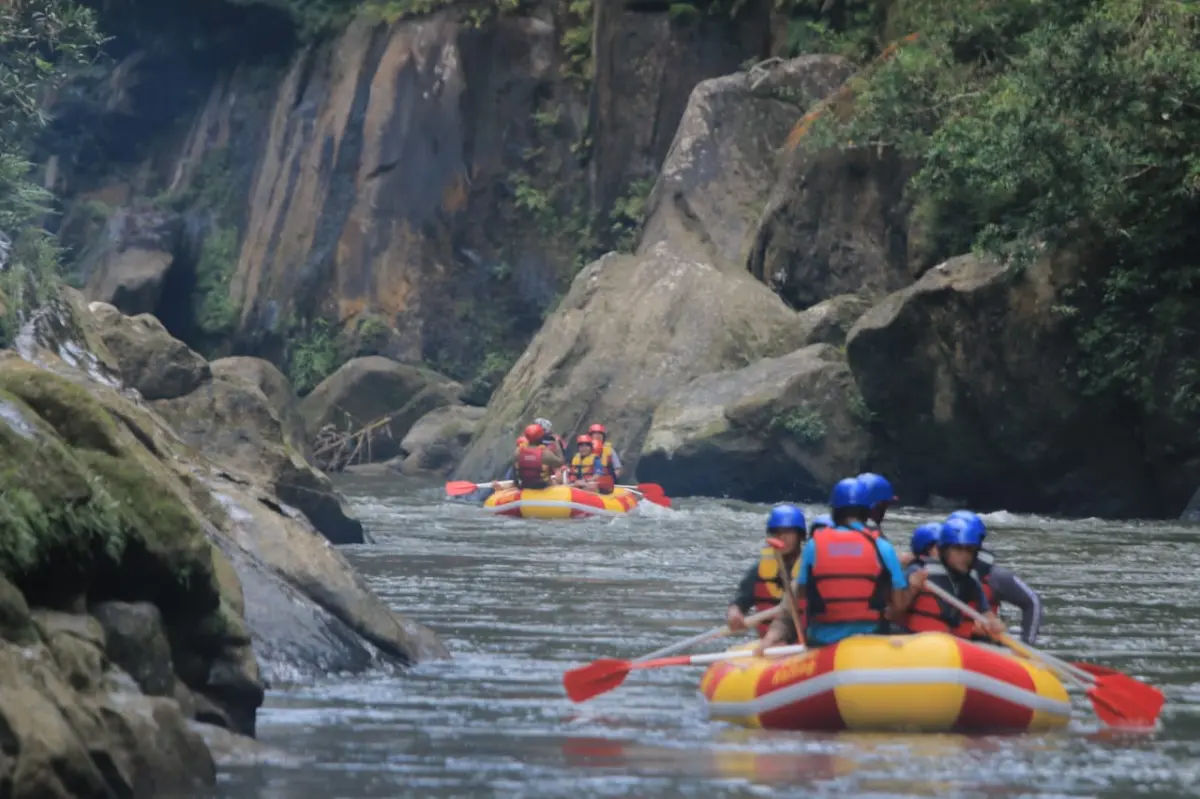 Daya Tarik: Arung jeram santai (body rafting) dan pemandangan tebing yang eksotis.