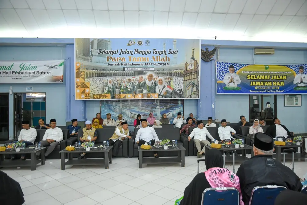 BATAM, AmiraRiau.com – Pelaksana Tugas (Plt) Direktur Utama PT Bank Riau Kepri Syariah, Helwin Yunus, turut mendampingi Pelaksana Tugas (Plt) Gubernur Riau, SF Hariyanto, dalam pelepasan Jemaah Calon Haji (JCH) Kloter 4 Embarkasi Batam, Minggu (26/4/2026).