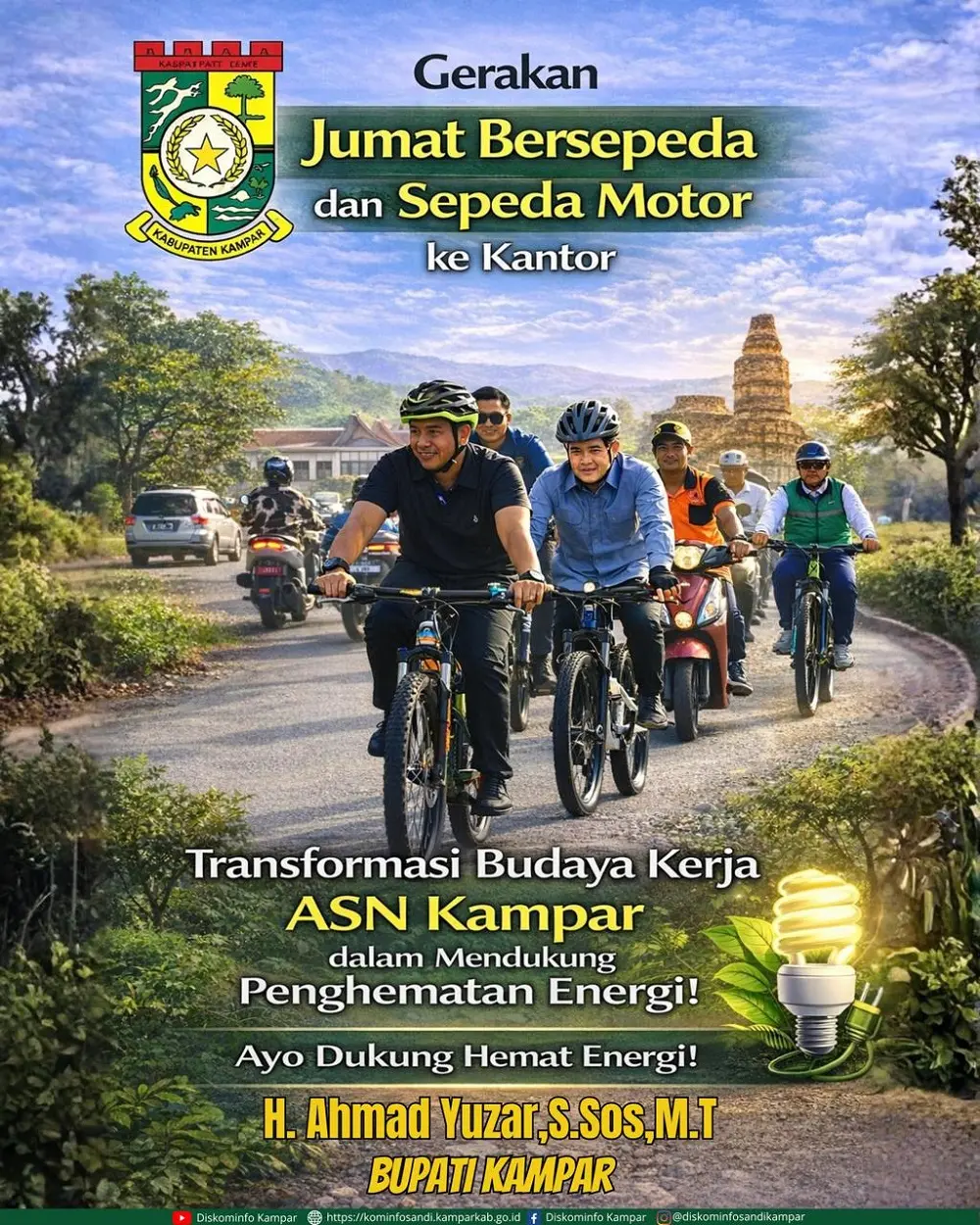 Gerakan Jumat Bersepeda dan Sepeda Motor ke Kantor, ini merupakan komitmen Bupati Kampar Ahmad Yuzar dalam menindaklanjuti Surat Edaran (SE) Kemendagri Terkait Penghematan Energi.